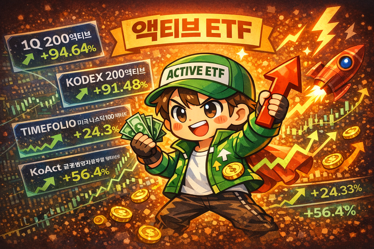 최근 ETF 시장에서 **단순 지수 추종을 넘어 운용전략으로 초과수익을 추구하는 “액티브 ETF”**에 대한 관심이 커지고 있습니다. 액티브 ETF는 펀드매니저의 투자 판단에 따라 포트폴리오 구성이 달라지기 때문에 시장 평균 수익률을 뛰어넘는 성과를 낼 수 있다는 점이 장점입니다. 실제로 일부 액티브 ETF는 같은 기간 대표 지수 대비 압도적으로 높은 성과를 기록하며 투자자들의 주목을 받고 있습니다. (다음)